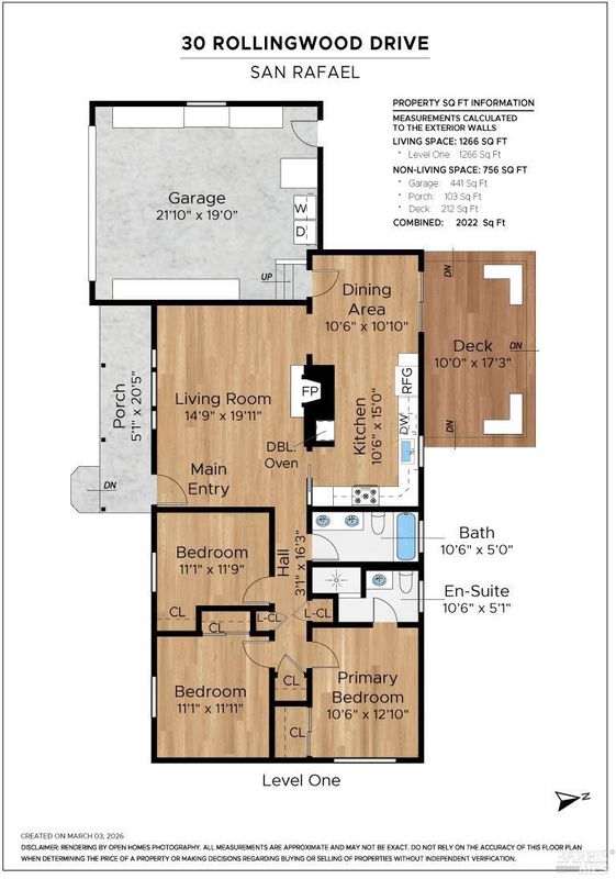 - Bedroom(s), Dining Room, Garage, Kitchen, Living Room, Primary Bedroom, Street Entrance