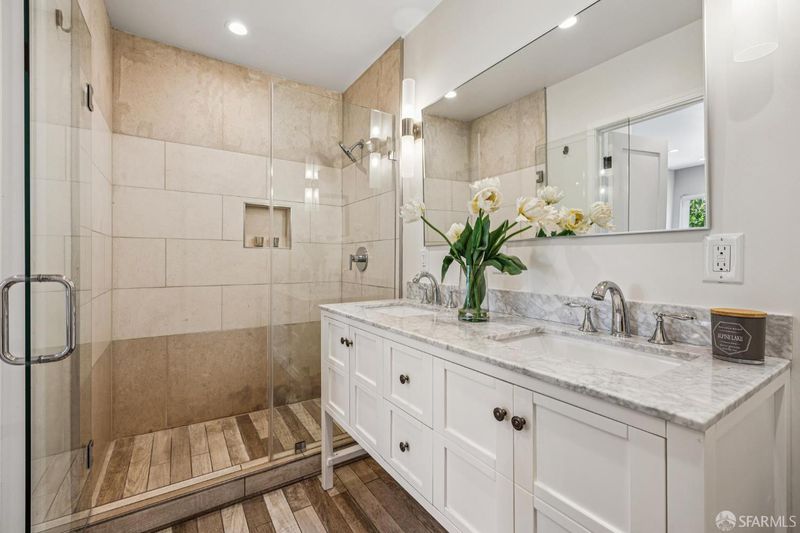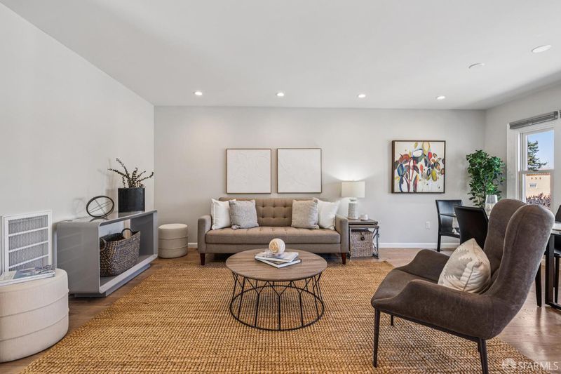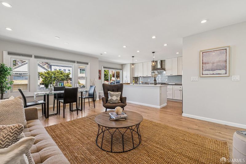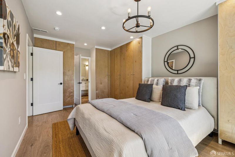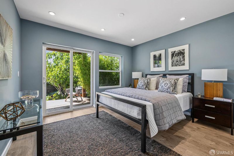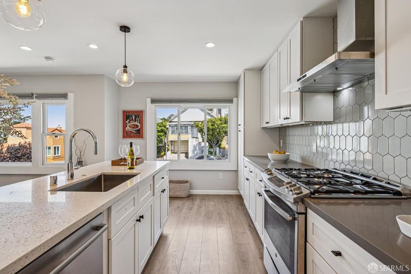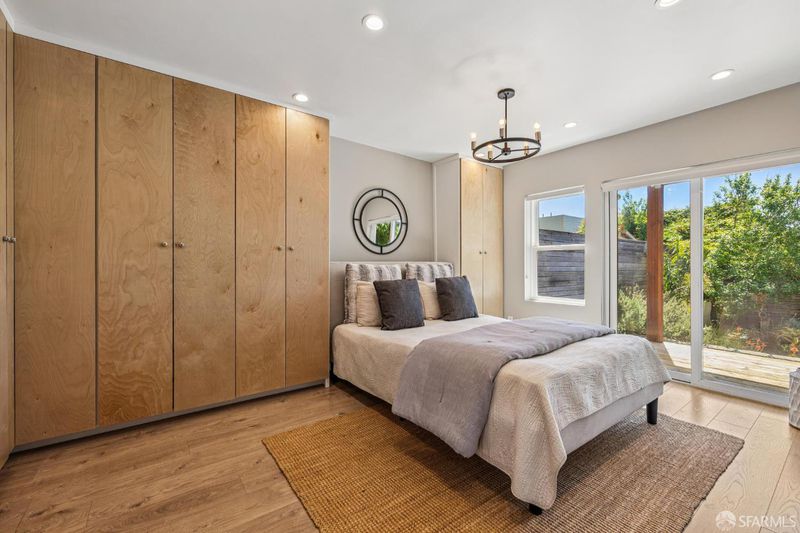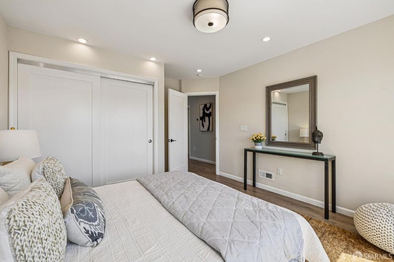 Views from the front and views from the back! This expansive 5-bedroom, 3-bathroom mid-century home delivers the best of Bayview living from every angle. Perched on one of the neighborhood's most desirable blocks, the home has been thoughtfully remodeled to blend modern comfort with timeless design.Take in sweeping city views from the living room, with glimpses of both Bay Bridge and Golden Gate Bridge towers, or enjoy your morning coffee from the second-story rear deck overlooking the Bayview valley and San Bruno Mountains beyond The main level features a bright, open-concept floor plan ideal for entertaining, anchored by a massive chef's kitchen with stainless steel appliances, stone countertops, tile backsplash, and abundant cabinetry. A large center island with sink and bar seating seamlessly connects the kitchen to the living and dining areas, all bathed in natural lightcreating a true heart-of-the-home experience.Three spacious bedrooms are located on the main level, including two with direct access to a sunny south-facing view deck. Downstairs, you'll find two additional bedrooms, including a generous primary suite with dual vanities and a stone shower. A separate kitchenette with sink and wine fridge, along with its own private entrance, offers excellent potential for guest quarters or income opportunities. Both lower-level bedrooms open directly to the backyard and deck, enhancing the home's indoor-outdoor flow.The semi-private, landscaped yard is a true retreat, featuring mature, producing fig and pluot trees, all-day sun, and views toward Twin Peaks. Additional highlights of the home include a one-car garage, ample storage throughout, dual-pane windows throughout, updated flooring, bathroom skylight, security video system, high-end lighting fixtures, fresh exterior paint, partial custom closets, and a breezeway entrance connecting both levels.Located on a quiet block walking distance from the 3rd Street corridor and Muni T-Line, you're close to local favorites like Gratta Wines, All Good Pizza, Tato, Cafe Alma, and Old Skool Cafe, with easy access to both 280 and 101 freeways. One block from Hilltop Park, one of SF's most exciting new parks and skateparks.Experience the very best of Bayview living.
