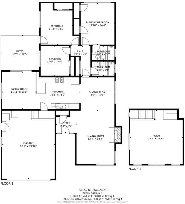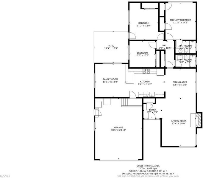 - Primary - Stall Shower(s), Shower over Tub - 1, Tile, Updated Bath