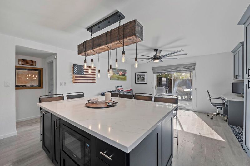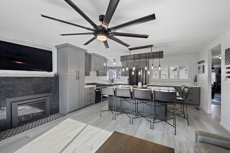 - Countertop - Quartz, Dishwasher, Exhaust Fan, Garbage Disposal, Hood Over Range, Island, Microwave, Oven Range - Gas, Refrigerator
