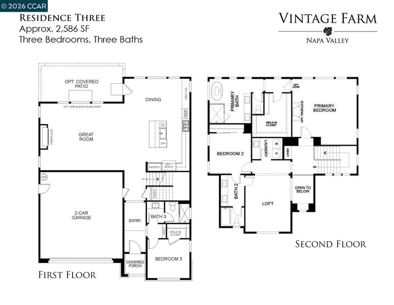 NEW! Popular Residence 3 Home at Vintage Farm by Davidon Homes now ready for QUICK MOVE-IN! This approximately 2,586 sq. ft. two-story home features a warm and welcoming great room with fireplace, gourmet kitchen with stainless steel KitchenAid appliances, and one of the home’s secondary bedrooms and baths on the main level. Secluded on the upper level is an elegant primary suite with large walk in closet and beautiful spa-like bath, another secondary bedroom and bath, and loft/recreation room. Located just minutes from Hwy 29, Vintage Farm is secluded among quiet, well established neighborhoods in the heart of Napa. Conveniently close to shopping, dining, schools and sport fields, Downtown Napa and all that the spectacular Napa Valley has to offer. Includes owned PV solar system and over $128K in builder options and upgrades. Ask about our special incentives!