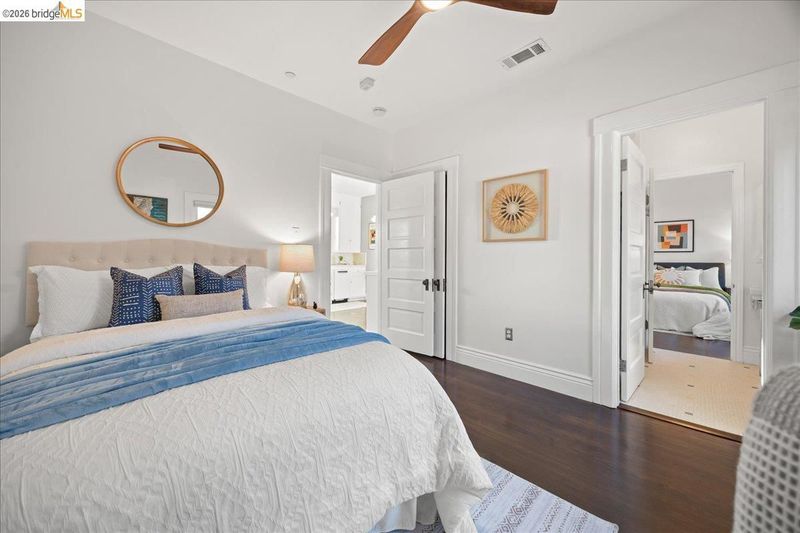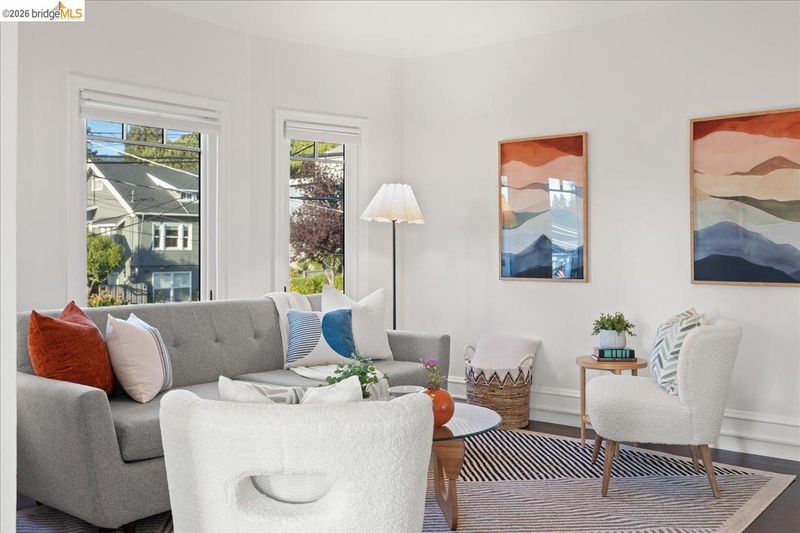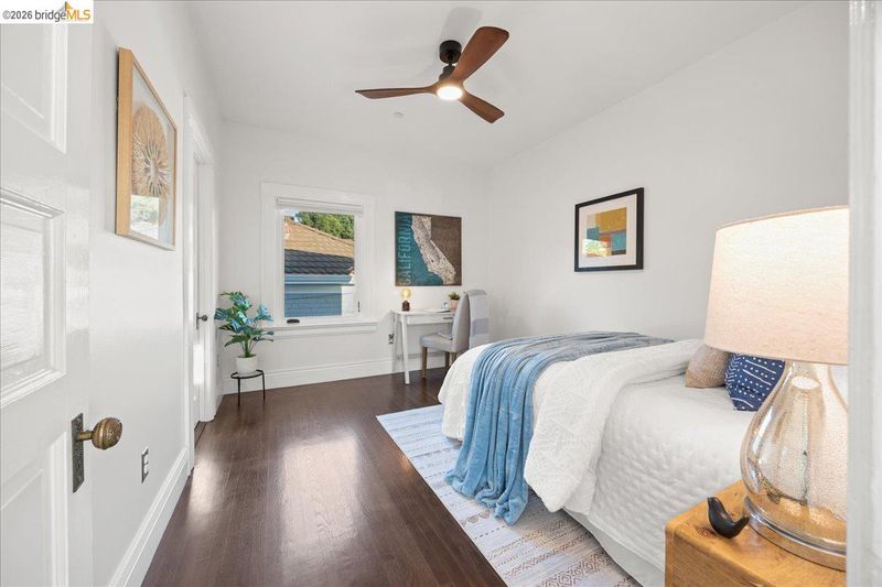 Reimagined from a 1910 Craftsman bungalow, 2201 Coloma is now the top residence at Rose House Condos, a 3-unit conversion in the vibrant Dimond District—yet lives beautifully as the single-family home it was always meant to be. Enter the foyer leading to a charming living room & dining room with original Craftsman details throughout, including oak hardwood floors & custom built-ins. A gorgeous large kitchen is both stylish & functional, featuring a quartzite countertop, Big Chill refrigerator, classic Wedgewood stove that leads right to your private redwood deck for sublime indoor outdoor / living and spectacular sunset views. The bedrooms are nicely sized with ample closet space and a beautiful updated bathroom. In-unit laundry and a coveted front-row driveway parking space.