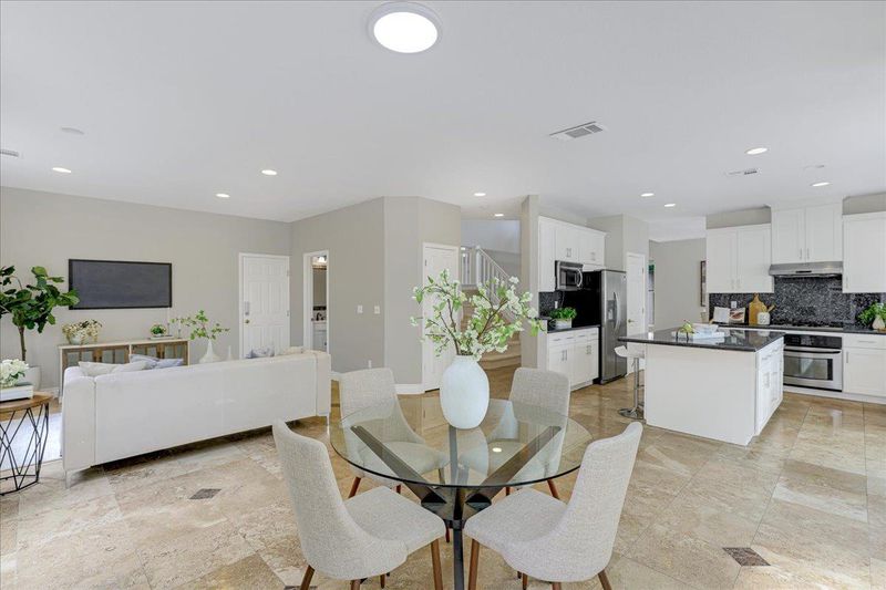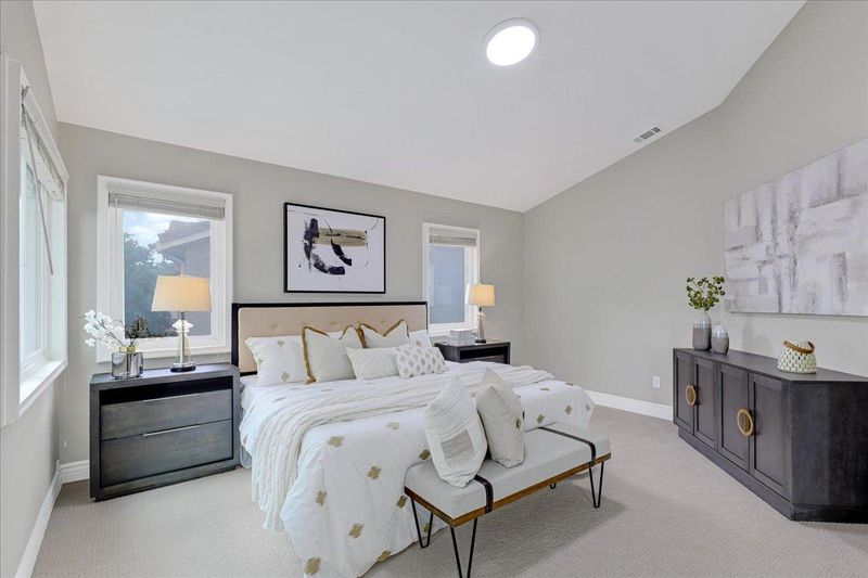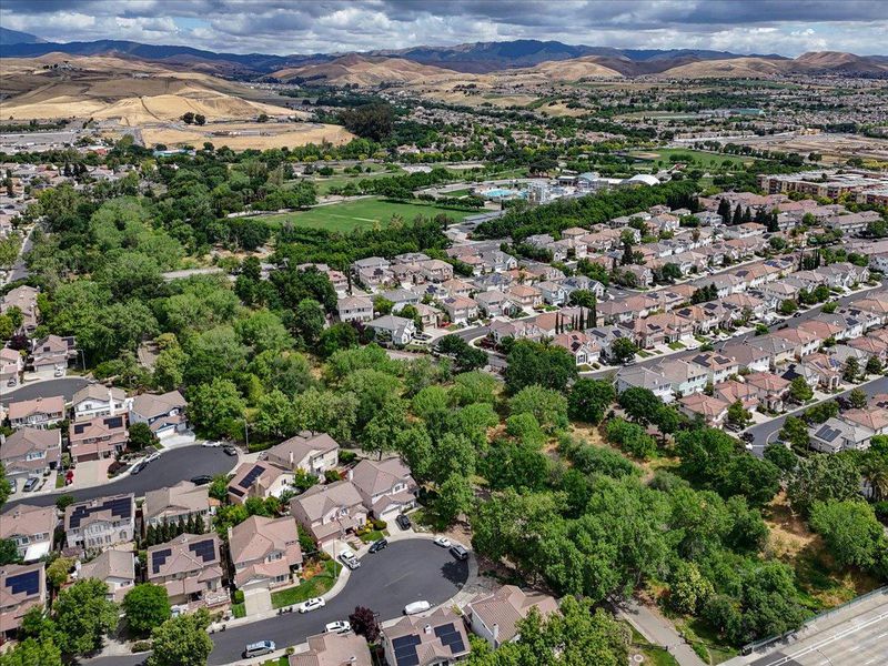 Welcome to the N. W. facing, gorgeous single family house located on a private cul-de-sac in the highly sought after Creekside community! The house has 4 bedrooms, 3 bathrooms, 2 car garage and 2589 sqft living with a bedroom and a full bathroom downstairs. Ideal floor plan offers an inviting living & formal dining, gourmet kitchen, extended family room and spacious bedrooms. Vaulted ceiling and large windows allow the light to pour in! Updated kitchen with newly painted cabinets, pantry, granite countertop, gas stove PLUS large center island. The kitchen's island & breakfast nook provide additional space for casual dining and meal prep. Upper loft area overlooks living/dining area with cabinets. Huge master bedroom with vaulted ceiling, upgraded bathroom with dual sinks & walk in closets. Fresh interior paint and brand new carpet for a crisp, modern look inside and out! Minutes to the movie theater, the WAVE at Emerald Glen park, Whole Foods, shops, restaurants, Tassajara Creek trail, top-rated schools K-12 including brand new Emerald High school, BART and NO HOA.