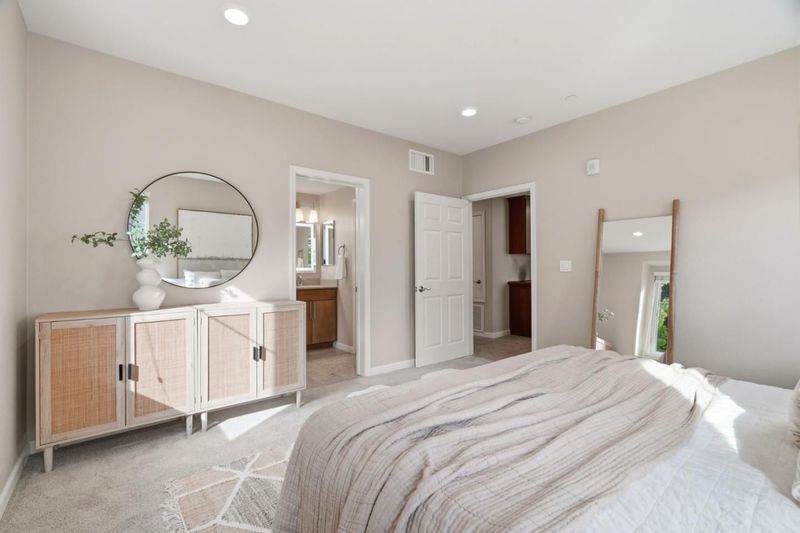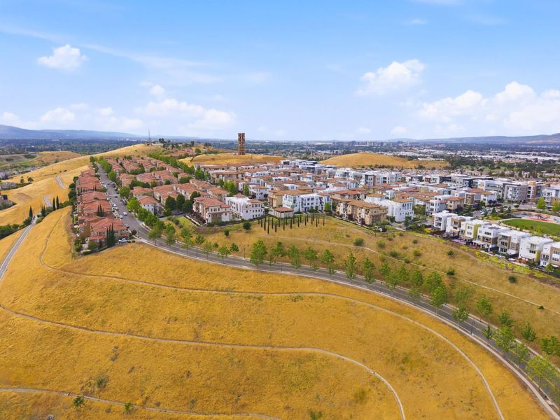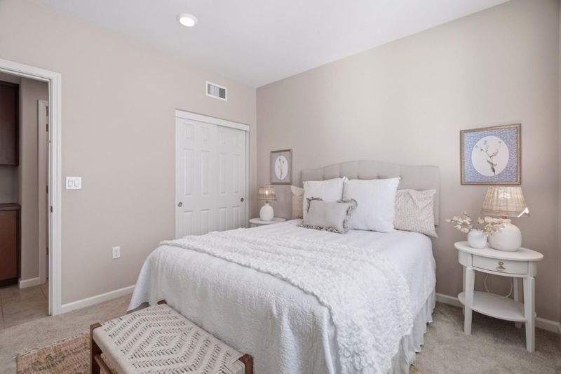 Perched at the top of Communications Hill, this corner-unit condo stands out as one of the best-located homes in the community, with park views, plentiful guest parking nearby, and a sought-after two-story layout that lives larger and more comfortably than many of the three-story alternatives. The floor plan is one of the most functional in the community, beginning with a spacious entry level that includes a full bedroom and bath, a large side-by-side 2-car garage, and a generous landing area with room for the practical moments of daily life, from strollers to shoes to bags and gear. Upstairs, soaring ceilings and glass railings keep the main level feeling open, bright, and connected. A gigantic living room, dedicated dining area, and kitchen with breakfast bar and pantry create exceptional common space for both daily living and entertaining, while two additional bedrooms and two full bathrooms complete the upper level. The private balcony overlooks the park, and the home is ideally located near the overlook bench and scenic trails while still feeling tucked within the community. Additional features include central heat and A/C, dual-pane windows, water softener, EV wiring, & excellent access to Caltrain, light rail, major highways, DT San Jose, DT Willow Glen, and SJC.