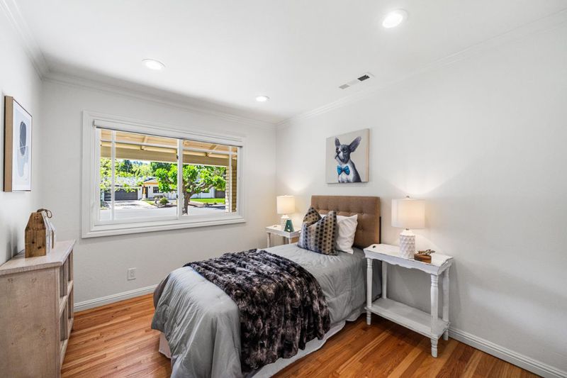 Experience the quiet sophistication of this beautifully refreshed 4-bedroom, 2-bathroom ranch home in the coveted Belwood of Los Gatos neighborhood. Enter the bright entry where an oversized skylight pours ample natural light across the polished interior. Every detail is elevated, from the refinished hardwood floors, fresh designer paint, updated windows and interior doors, plus a NEW composition roof. The kitchen serves as a refined centerpiece, featuring quartz countertops and stainless appliances. Set on a generous 10,000+ square foot lot, the homes standout feature is the classic brick front porch offering stunning hillside views. The private backyard features an expansive deck designed for seamless entertaining. Enjoy access to top-rated schools, including Leigh High School, and a prime location moments from Belgatos Park, the community pool, Lele Cakes cafe©, and easy freeway access. This home combines top-quality updates with a premier Los Gatos lifestyle.