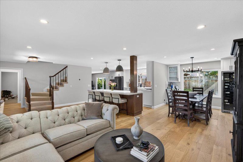 This beautiful home in Morgan Hill's sought-after Paradise neighborhood offers the ideal blend of style, comfort, and indoor-outdoor living. With over $200K in recent remodeling, a light-filled interior showcases wire-brushed European white oak flooring throughout the main level, recessed lighting, and a seamless layout. Separate formal living and dining areas are complemented by an inviting family room with a sleek 36-inch Redstone electric fireplace and slider door to the back. The chef's kitchen features Cygnet Drift quartz countertops with full-height backsplash, white shaker cabinetry, a farmhouse sink, and premium KitchenAid appliances including double ovens and a gas cooktop. An oversized, statement-making island with bar seating anchors the space. A main-level bedroom and full bath offer flexibility for guests or multi-generational living. Upstairs, the spacious primary suite includes a walk-in closet, mountain views, and an updated bath, while three additional bedrooms share a hall bath. The backyard is designed for entertaining with a pool, spa, pergola, outdoor TV, built-in island, and fire pit. Additional highlights include dual-zone HVAC, dual-pane windows, indoor laundry, and a 2-car garage. Ideally located near parks, downtown, and desirable Morgan Hill schools.