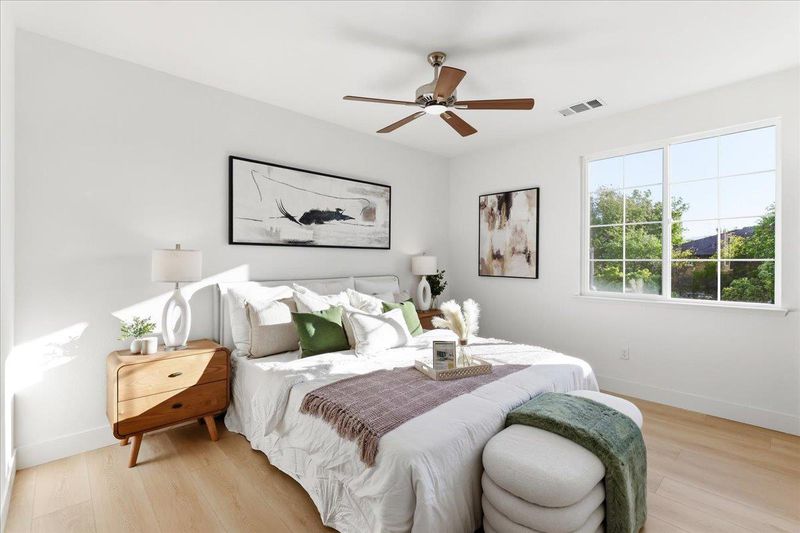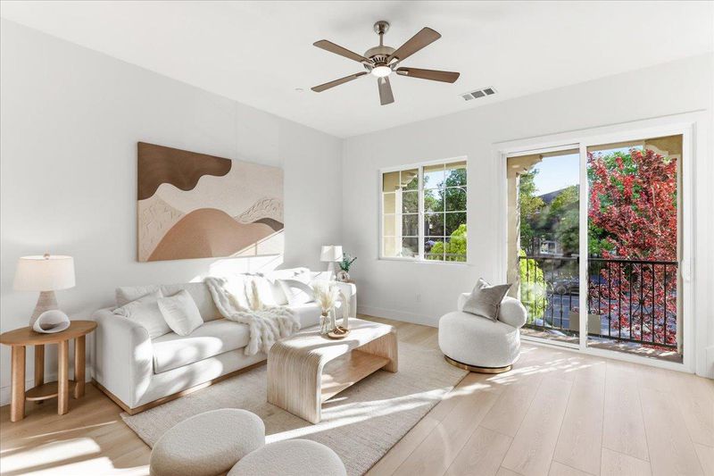 Experience modern, stylish living in this exceptional townhome located in the highly sought-after Evelyn Place community. This eight-year-old Townhome features 3 bedrooms, a first-floor office/den, and 2.5 bathrooms, offering a functional and well-designed layout. The gourmet kitchen is a chefs delight, showcasing a spacious island, ample cabinetry, and stainless steel appliances. The open-concept layout seamlessly connects the living, dining, and kitchen areasperfect for everyday living and entertaining. Upstairs, the bright primary suite includes a walk-in closet and dual-sink vanity. Recent upgrades include new interior paint, new flooring throughout, and a new dishwasher. Low HOA dues of $290 per month cover garbage service. Ideally located just minutes from major tech campuses including Google, Apple, LinkedIn, and Amazon, this home offers exceptional convenience. Enjoy walking distance to Google and Meta shuttle stops, as well as easy access to Downtown Sunnyvale, Caltrain, major freeways, Central Expressway, and Lawrence Expressway. Don't miss out on this exceptional home!