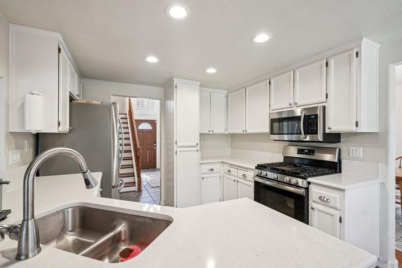 Discover this functional split-level home at 301 Portsmouth Avenue in Vacaville. This 5-bedroom, 3-bath residence offers 2,306 sq ft of living space on a 6,782 sq ft lot and was built in 1989. The lower level features a private bedroom and full bathroom conveniently located next to the garage and living roomideal for guests, in-laws, a home office, or multi-generational living. The main entry level opens to a spacious family room, dining room, and kitchen. Upstairs you will find four additional bedrooms, including the generous master suite. The kitchen opens directly to a large covered patio overlooking the backyard, creating the perfect flexible space for yoga or workouts, seasonal dining, relaxation, reading, or meditation. Recent upgrades include a newer fence installed in 2023, solar panels (leased with NEM 2.0) for major energy savings, and a Tesla-ready EV charger in the garage. Newer appliances include the dishwasher and water heater. Conveniently situated minutes from Travis AFB, major freeways, hospitals, and shopping centers. Seller is open to VA loan assumption for qualified VA-eligible buyers with a strong, acceptable offer. This thoughtfully laid-out home combines practicality, efficiency, and prime location. Ready for your personal touches and immediate enjoyment.