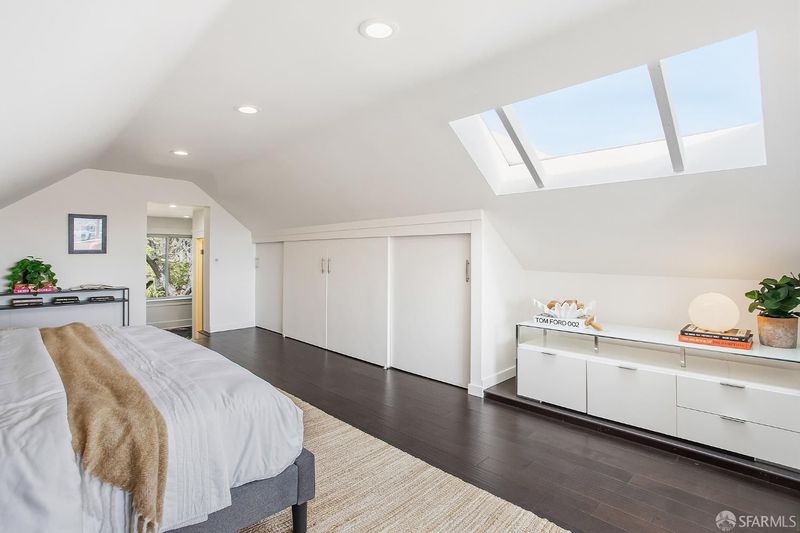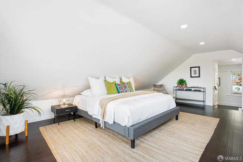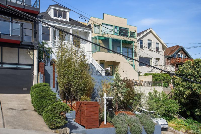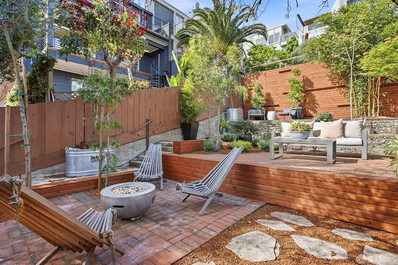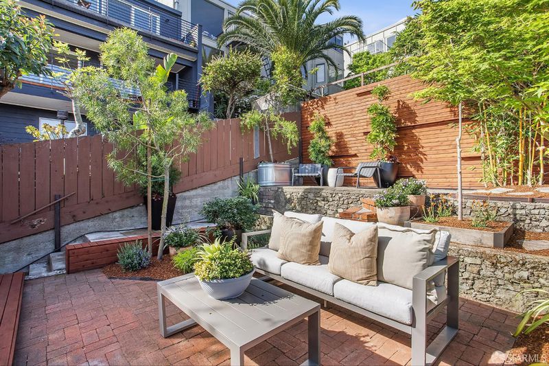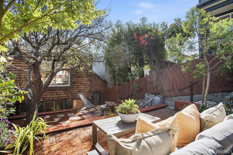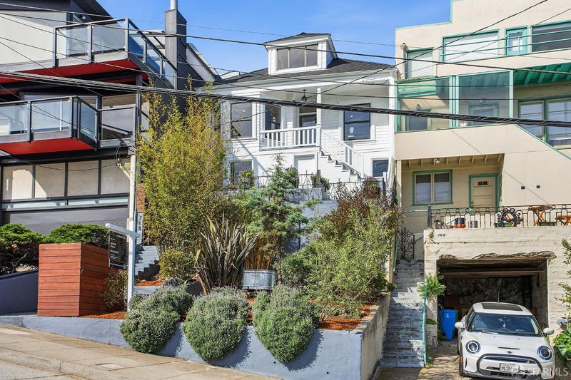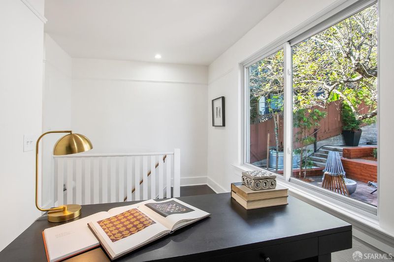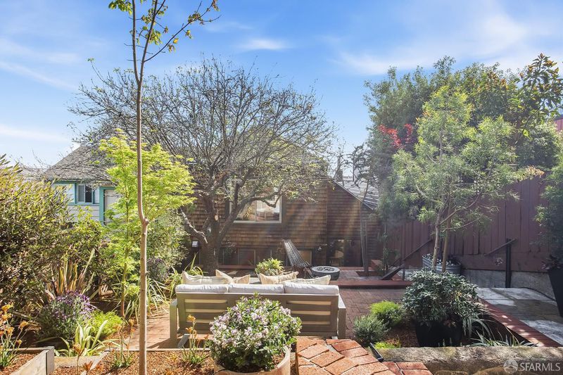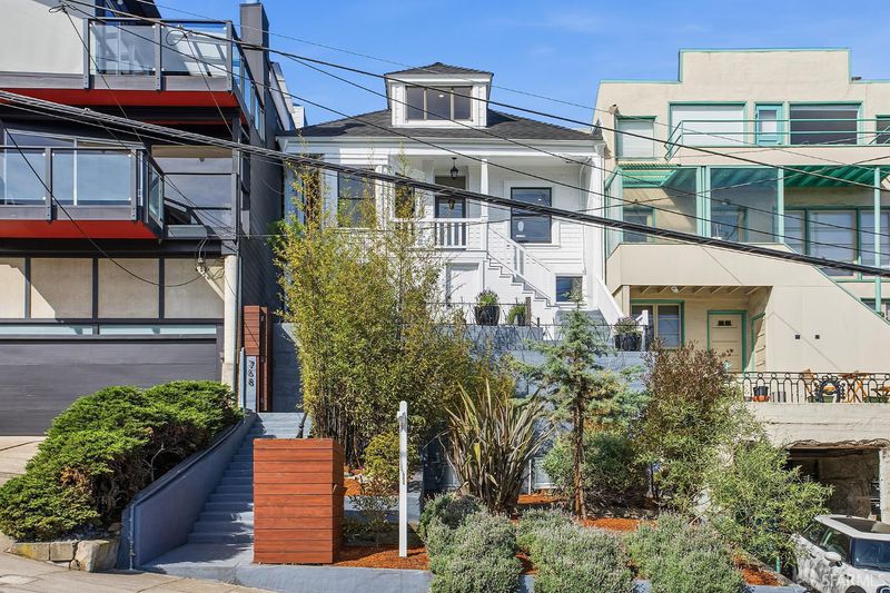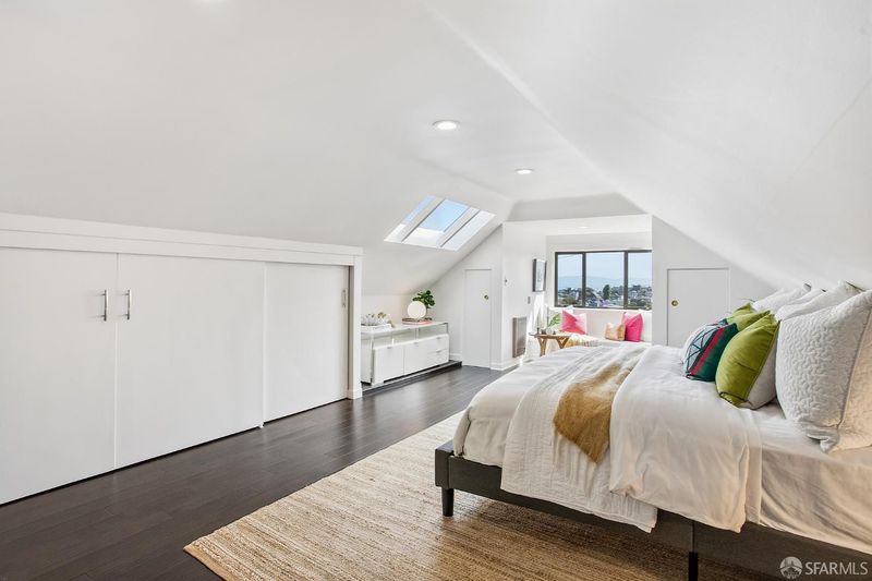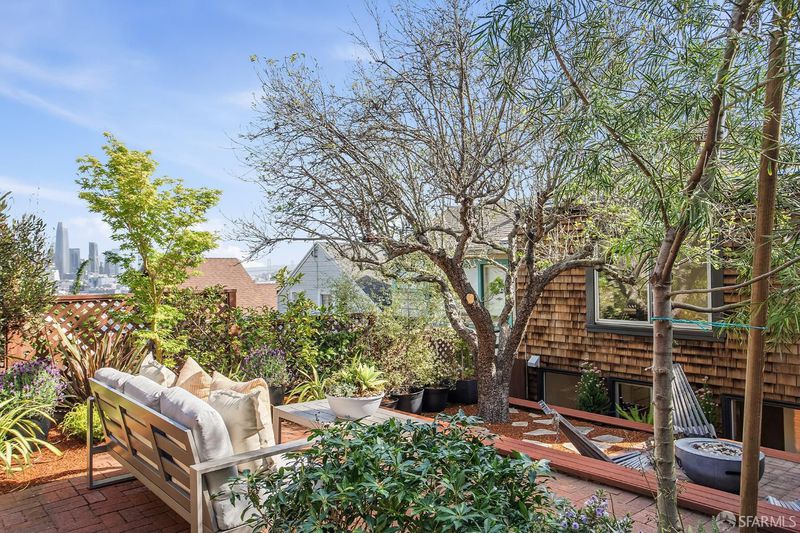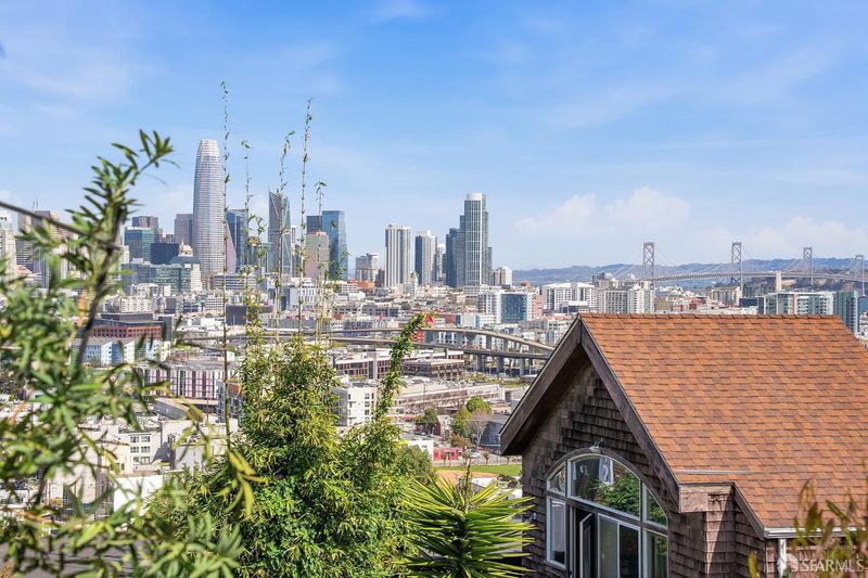 Situated on the desirable North Slope of Potrero Hill, 768 De Haro captures a truly captivating panorama of Downtown San Francisco, the Bay Bridge, and the Bay - an elevated setting enjoyed from both the home's interior living spaces and its front and terraced backyard patios. Filled with natural light, the main level opens onto a combined living and dining area, along with an adjacent kitchen with ample storage, generous counter space, and stainless steel appliances. A well-appointed bedroom with French doors and built-in closets, along with a fully remodeled bathroom, complete this level. Upstairs, a convenient office nook overlooks the backyard and leads to a spacious primary suite. Serene sloped ceilings enhance the sense of space, while the beautifully remodeled bathroom features a large walk-in shower and a marble-look vanity. Wake to soft morning light and views stretching across the East Bay. The outdoor space offers your own private oasis. Step onto the terraced patios and take in sweeping panoramic views of the city, Bay Bridge, and Bay. Lovingly maintained, the garden is dotted with mature flowering trees, succulents, and lush shrubs that beautifully frame the setting, perfect for relaxing, entertaining, or simply enjoying the view. Practical details are equally considered: a spacious basement with a laundry area and additional storage, ample storage throughout, and a brand new roof installed in 2026 offer peace of mind for years to come. Street parking is easy and readily available. Enjoy Potrero's famous sunny weather, quick access to 280/101, 15 minutes from SFO and unbeatable proximity to the #10 bus line, Caltrain, Mission Bay, Chase Center, library, and neighborhood cafes. Adding to its character, the home was featured in the iconic 1970s series The Streets of San Francisco, starring Karl Malden and Michael Douglas.
