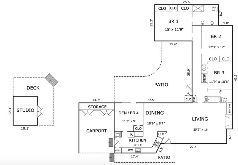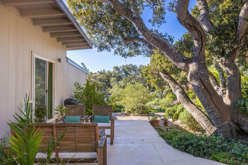 Experience the perfect harmony of iconic design and modern amenities in this single-level mid-century modern gem. Tucked away on a tranquil cul-de-sac, this property offers a "best of both worlds" location in a peaceful park-like setting just minutes from the vibrant energy of downtown Carmel and prestigious Carmel High School. Step inside to a bright, airy living space defined by open-beam ceilings, a classic fireplace, and dining area with floor-to-ceiling windows framing your view of a spacious outdoor patio and meandering garden paths leading to a separate studio. The layout is designed for flexibility, featuring 3 bedrooms plus den that could serve as a 4th bedroom or home office. The two baths have been updated with soothing tones, and new kitchen features quartz countertops, clever abundant storage, & stainless steel appliances. Experience the natural beauty of this 13,000+ sqft fully fenced, beautifully landscaped private oasis from every room. Other features include air conditioning and a wealth of parking options. Whether youre relaxing in the lush backyard or hosting friends in the open-concept living/dining areas, youll feel worlds away from the hustle while remaining at the doorstep of the Peninsulas finest dining and beaches.