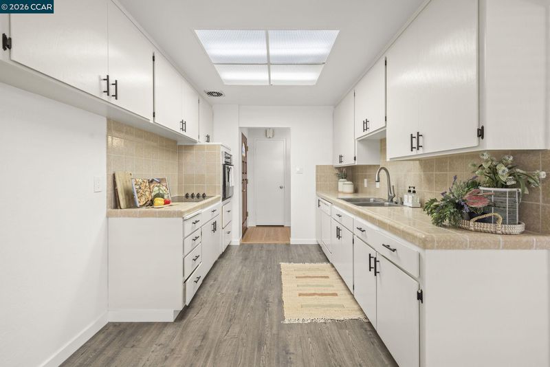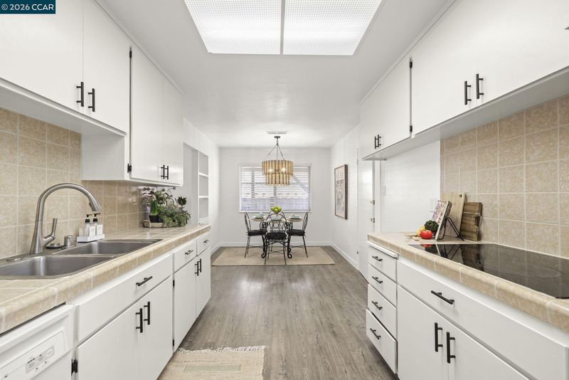 - Dishwasher, Electric Range, Gas Water Heater, Breakfast Nook, Tile Counters, Eat-in Kitchen, Electric Range/Cooktop, Disposal