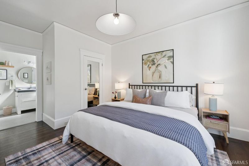 Ideally situated in one of the city's most desirable locations, this remodeled top floor two bedroom two bathroom condo offers classic details, stylish updates, private outdoor space, and elevated city living. A generous formal living room features a fireplace, gorgeous built-in cabinetry, and windows with downtown views. With ideal flow, the living room opens into a spacious dining room and bright, remodeled kitchen with sleek tile, stainless steel appliances, and ample counter space and storage. Two tranquil bedrooms at the rear of the condo open to a large, private west-facing deck. One bedroom is ensuite with a full tiled bathroom. Second full tiled bathroom with a shower over tub, plus a laundry closet and large storage closet. Classic craftsmanship with beautiful stained-glass windows, ornate railings, wood floors, and painted trim. Private entryway, garage parking with storage, and rights to construct a roof deck. Two-unit Marina-style building with a gated entry. Centrally located in Corona Heights adjacent to Duboce Triangle with 97 Walk Score close to parks, Muni, shops, and dining in the Castro, Divisadero Corridor, Mission Dolores, and more. Offering a balance of charm, high style, and outdoor space, this refined residence is a superlative city home.