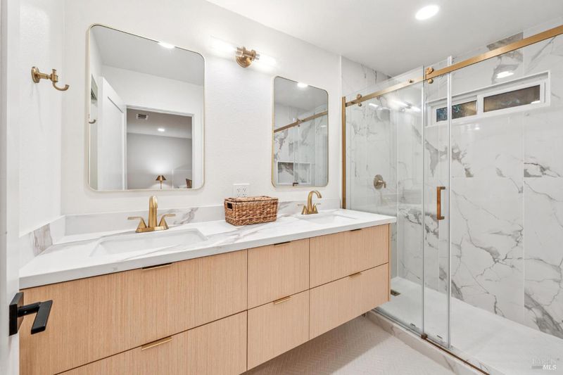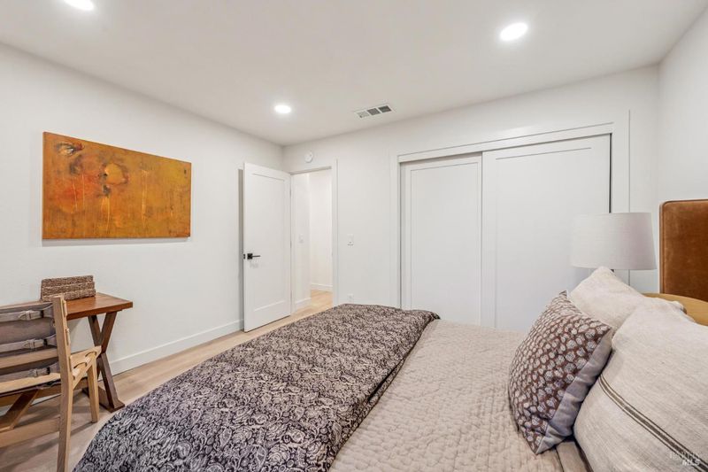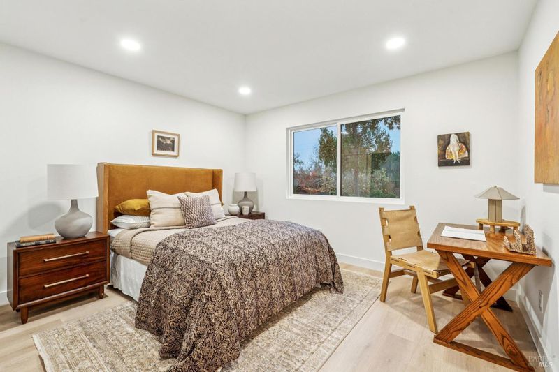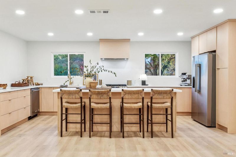 Welcome to 2941 Brookwood Drive - a stunning example of modern Wine Country living in the heart of Napa. This meticulously renovated 3-bedroom, 2-bath home showcases designer-level finishes throughout, blending contemporary Scandinavian-inspired aesthetics with Wine Country warmth. Beautiful wide-plank flooring flows seamlessly throughout, creating an open and inviting atmosphere. The gourmet kitchen features custom light wood cabinetry, crisp white quartz countertops, premium stainless steel appliances and a stunning oversized island with seating for four. Both bathrooms have been luxuriously redesigned with spa-like attention to detail. The primary bath features stunning marble-look tile, gold hardware accents, and a frameless glass shower enclosure that exudes sophistication, while the second bath boasts a floating dual-vanity with designer matte black fixtures and contemporary lighting. Step outside to your private backyard oasis featuring a spacious covered deck - perfect for al fresco dining and entertaining while enjoying the serene hillside setting. The expansive .38-acre lot provides ample space for gardens, outdoor activities, potential pool, or whatever your Wine Country dreams entail. This turnkey residence offers the rare opportunity to move right in and start enjoying Wine Country living immediately. Located in the peaceful Browns Valley East neighborhood with easy access to world-class wineries, downtown dining, and all that the valley has to offer.