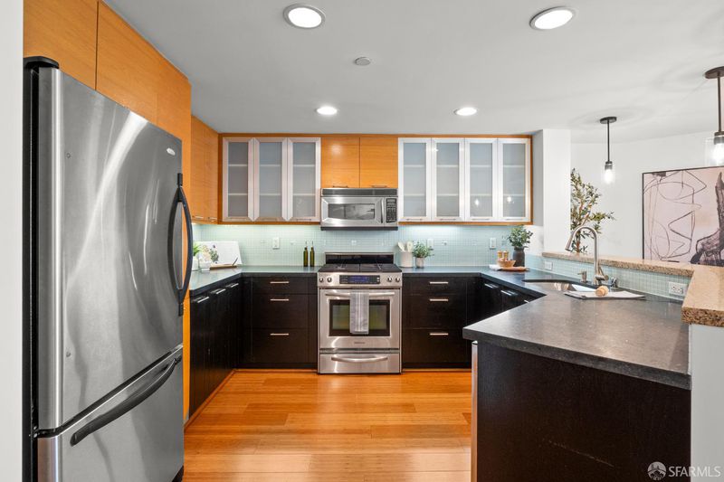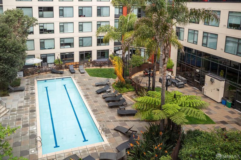 Enter into this bright and modern one-bedroom condo at 170 King Street #804 and discover the perfect everyday balance in the heart of South Beach. Overlooking the pool and lush inner courtyard, this home offers a peaceful retreat with abundant natural light and resort style amenities.This well-designed condo features an open floor plan with a spacious bedroom and ensuite bath, oversized walk-in closet, dedicated office area, and in-unit laundry. The kitchen is equipped with stainless steel appliances, gas range, granite countertops, and a breakfast bar. One-car deeded parking and a private storage locker complete the must-have list. Residents enjoy a well-managed, amenity-rich building with a landscaped courtyard, heated pool and spa, fitness center, indoor/outdoor lounge areas, theater room, and a rooftop terrace with downtown and Bay Bridge views. The home is ideally located near dining, shopping, and waterfront recreation, with close proximity to Oracle Park and the Embarcadero, and convenient access to Caltrain, MUNI, and major highways.